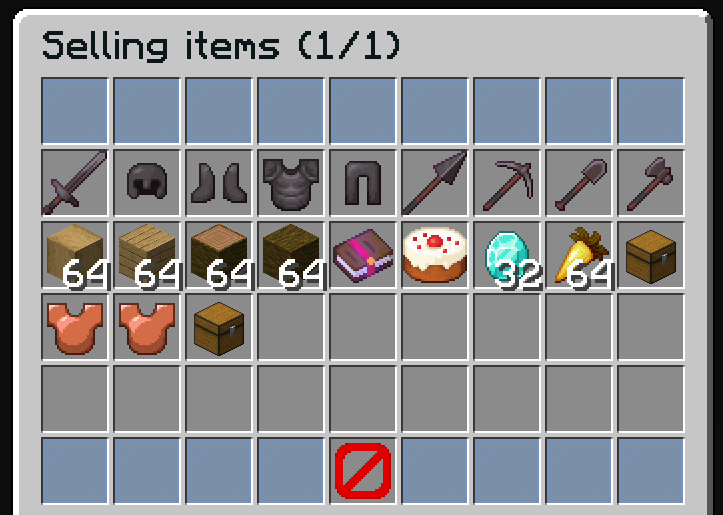 The selling items inventory displays items the player currently has listed for sale. Players can remove listings from here.